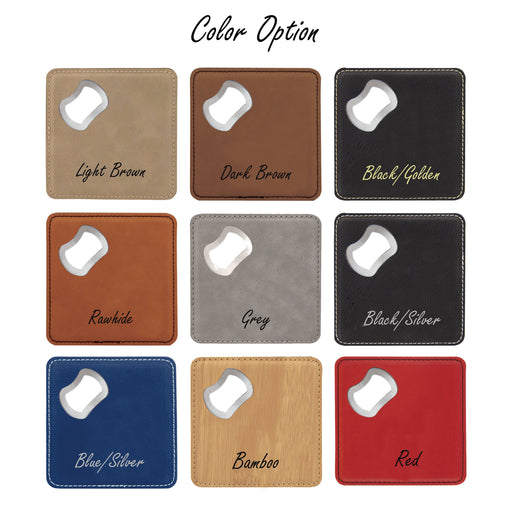 Original price $5.99 - Original price $30.00Original price$5.99 - $30.00$5.99 - $30.00Current price $5.99| /Personalized 4”x4” Square Leatherette Bottle Opener Coaster – Custom Engraved Water-Resistant Coaster with Built-In Bottle Opener