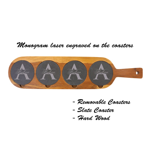 Original price $49.99 - Original price $49.99Original price$49.99$49.99 - $49.99Current price $49.99| /Personalized 18 1/2" Acacia Wood & Slate Serving Board with Handle and Removable Coasters